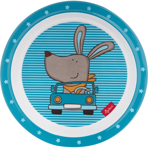 De rubberen ring aan de onderkant van de plaat maakt de schotel anti-slip en zorgt zo voor een goede grip op de tafel. De afgeschuinde rand helpt te voorkomen dat er te veel van het bord afglijdt tijdens de eerste onafhankelijke maaltijd – dus de eerste eetpogingen worden kinderspel. Het babyservies is gemaakt van 100% melamine en is getest volgens de Duitse levensmiddelen- en warenwet (LFGB). Het is vaatwasmachinebestendig, maar let op: het is niet geschikt voor de magnetron. Melamine is over het algemeen robuust, maar niet breukvast.