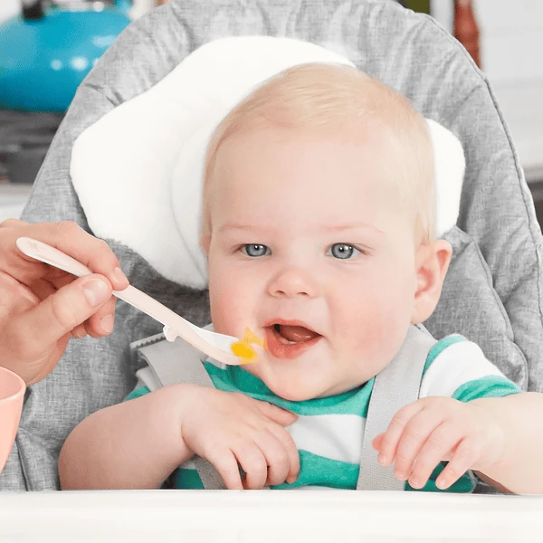 - De speciale spatelrand maakt het gemakkelijk om voedsel van het gezicht van uw baby te vegen