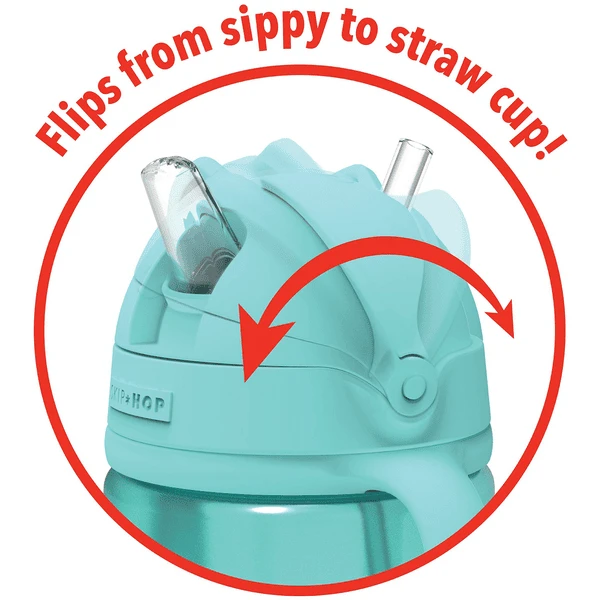 Het deksel opent aan één kant voor de drinktuit en aan de andere kant voor het rietje. De handgrepen zijn afneembaar.