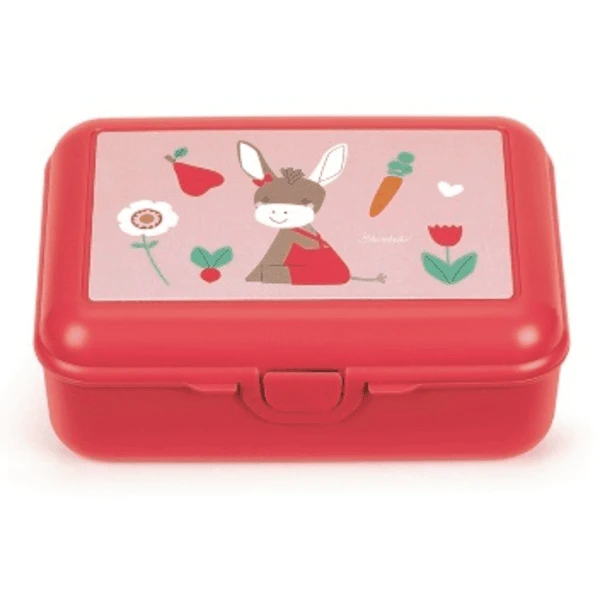 De kindvriendelijke broodtrommel biedt voldoende ruimte voor een smakelijk tussendoortje en dankzij de praktische binnenindeling kunnen fruit, groente of andere kleine hapjes ook apart hun eigen plekje vinden. Het schattige ezeltje uit de serie ‘Emmis Garden’ zorgt ervoor dat uw kleine lieveling zich amuseert en geniet van het eten. De praktische clipsluiting op het deksel maakt het gemakkelijk om het te openen en te sluiten – dus zelfs de allerkleinsten kunnen de lunchbox alleen gebruiken.