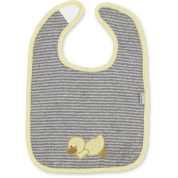 Praktisch klittenband slabbetje voor het gemakkelijk aan- en uitkleden in zachte badstofkwaliteit met aangebracht borduurmotief eendje Edda.