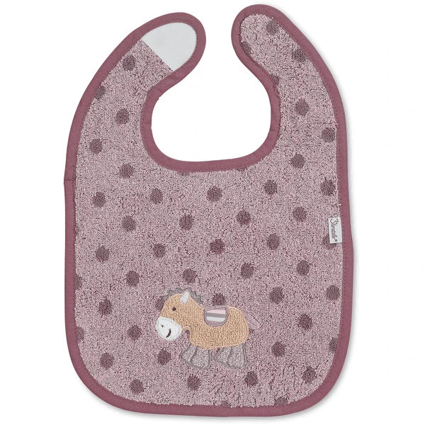 Het praktische klittenband slabbetje voor het gemakkelijk aan- en uitkleden. Gemaakt van zachte badstof kwaliteit met geappliqueerd borduurmotief Pony Pauline.