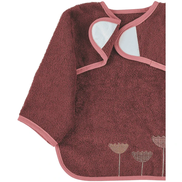 Mouwslabbetje met praktische klittenbandsluiting in aangename badstofkwaliteit, met geappliqueerd borduurmotief bloemen, passend bij de “Emmily” ezelserie.