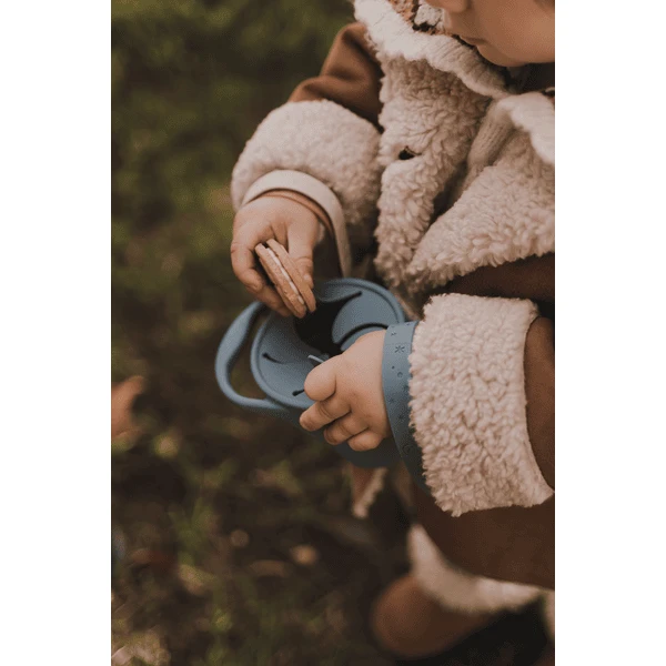 De beker kan ook tot één niveau worden ingeklapt, zodat uw kind gemakkelijk bij de hapjes op de bodem kan.