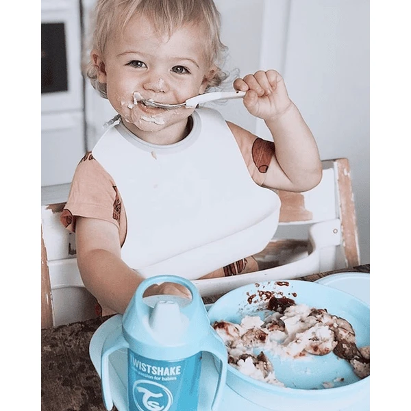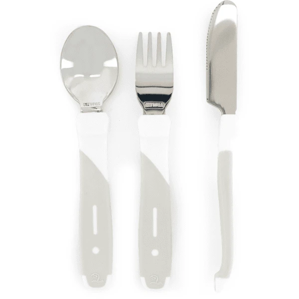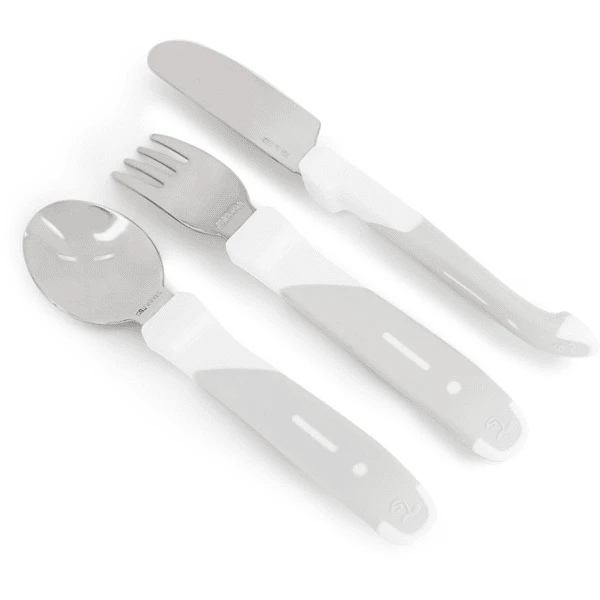 De Twist shake Het bestek heeft korte handvatten die perfect passen bij de handen van een klein kind.