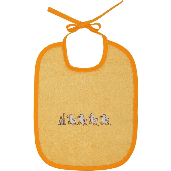 Geweldig slabbetje om te binden van pluizige badstof met eendenmotief.